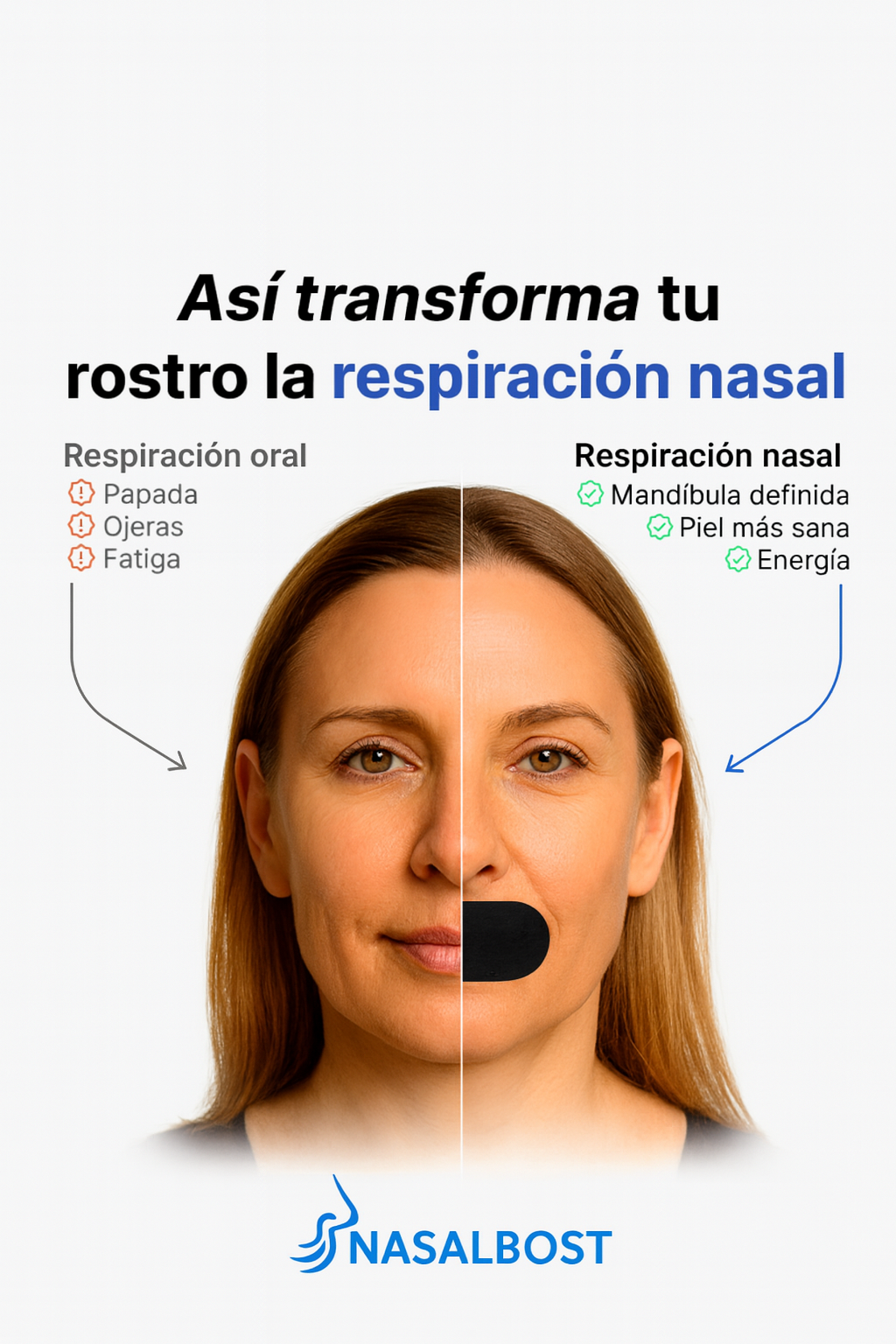 - Explicación: Gran parte del ronquido ocurre cuando el aire pasa por la boca y vibra en tejidos blandos de la garganta. Al sellar la boca, se obliga a respirar por la nariz, reduciendo esta vibración.