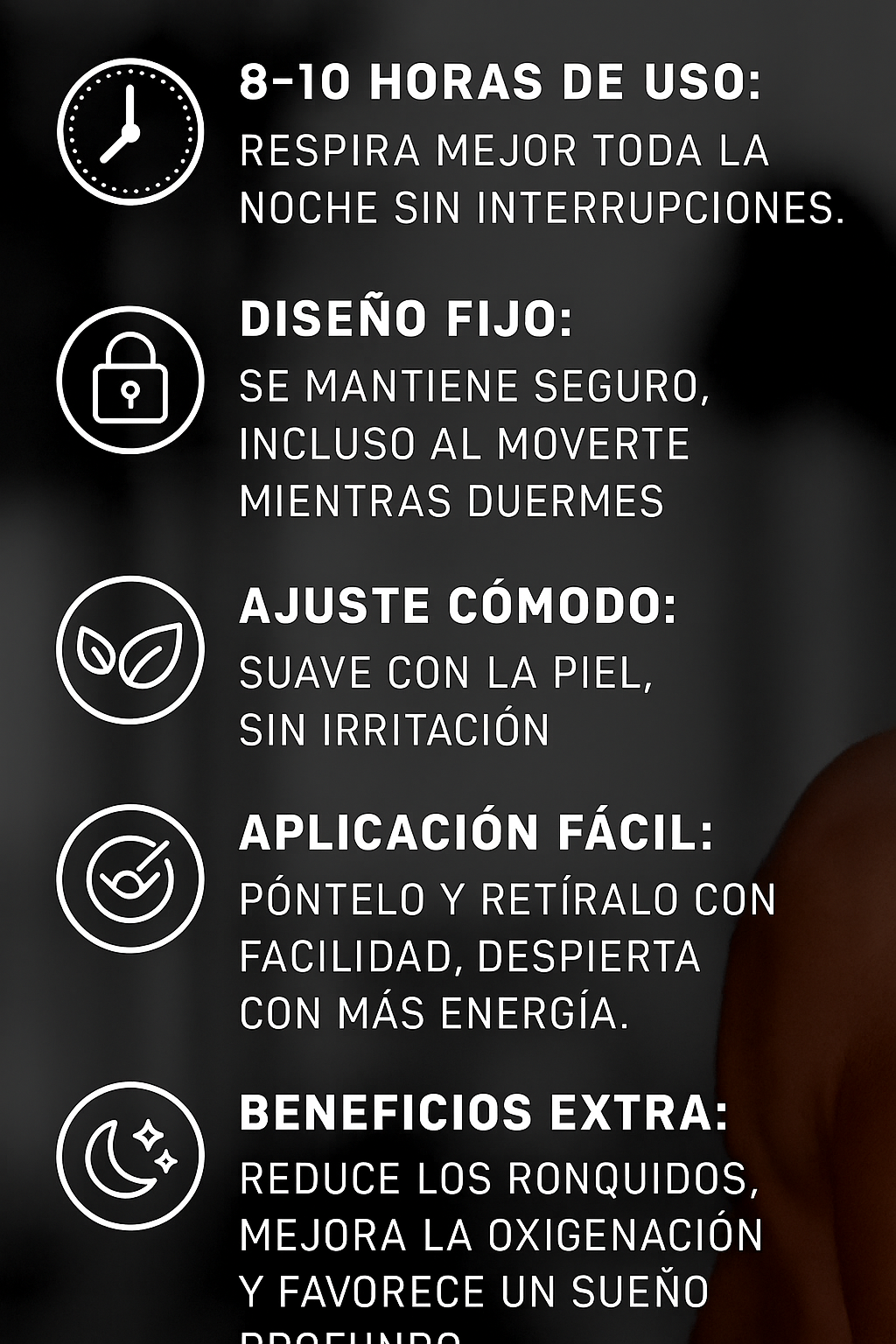 Precisamente la ventaja de las tiras nasales es que actúan de forma inmediata y natural. No necesitas rutinas complicadas ni esperar semanas para notar resultados.